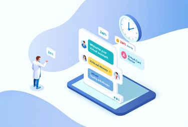 Recepção automática de pacientes pela IA, sem intervenção manual. Nossa automação interage com o paciente para coletar as informações necessárias para iniciar sua consulta